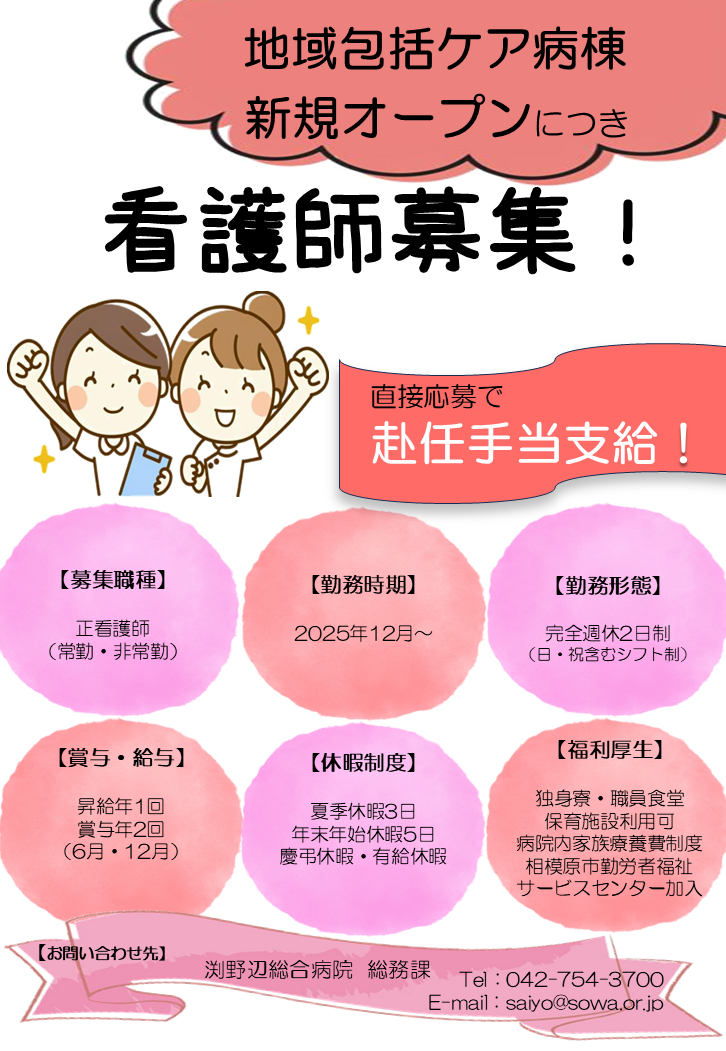 お知らせ(急募!新病棟看護師募集!(2025年12月入職))