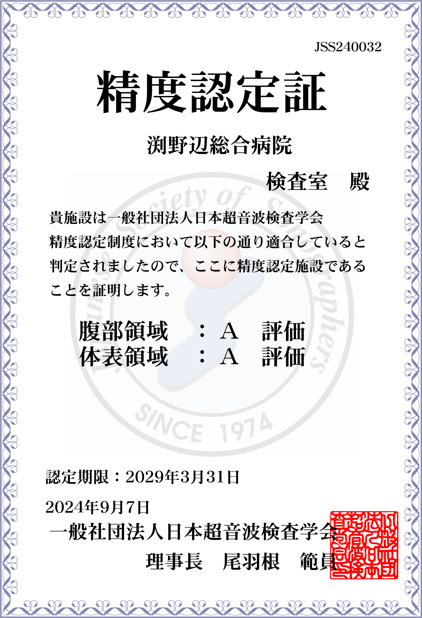 超音波検査では超音波検査学会の精度認定制度(消化器・体表臓器)を取得しています。